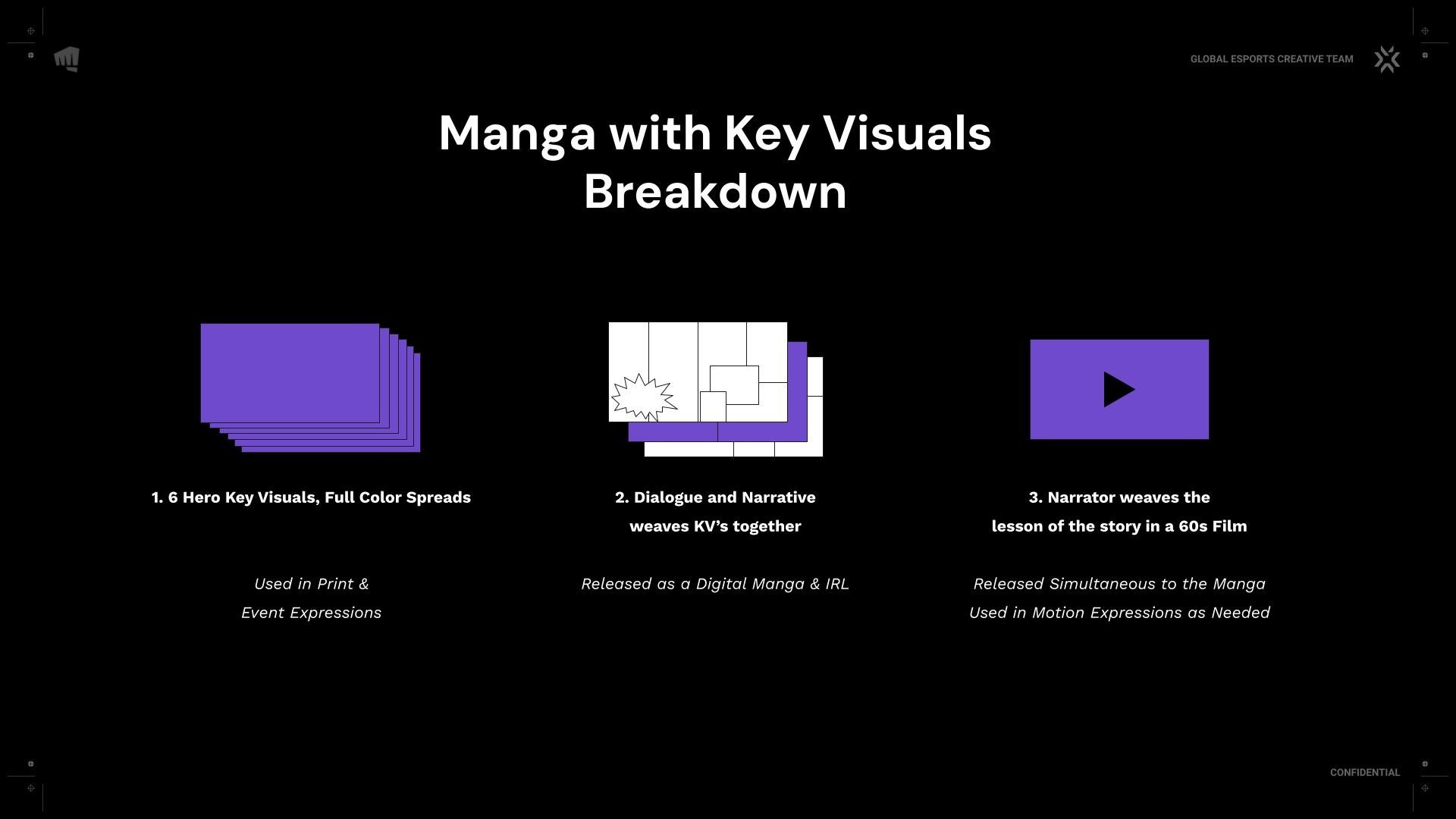 We made a manga? We made 30,000 copies of a manga?? We handed them out to fans, for free, every day of the tournament??? And we created an online reader with a bunch of different languages???? Yes. Honestly I'm still in shock this was something that I was able to do as part of my career. From story to storyboard to a $7,000 dollar proofing print shipped overnight from Japan, I collaborated with our multiple production partners hand-in-hand on creating a ( far-longer than expected ) one-shot manga for VALORANT Masters Tokyo.