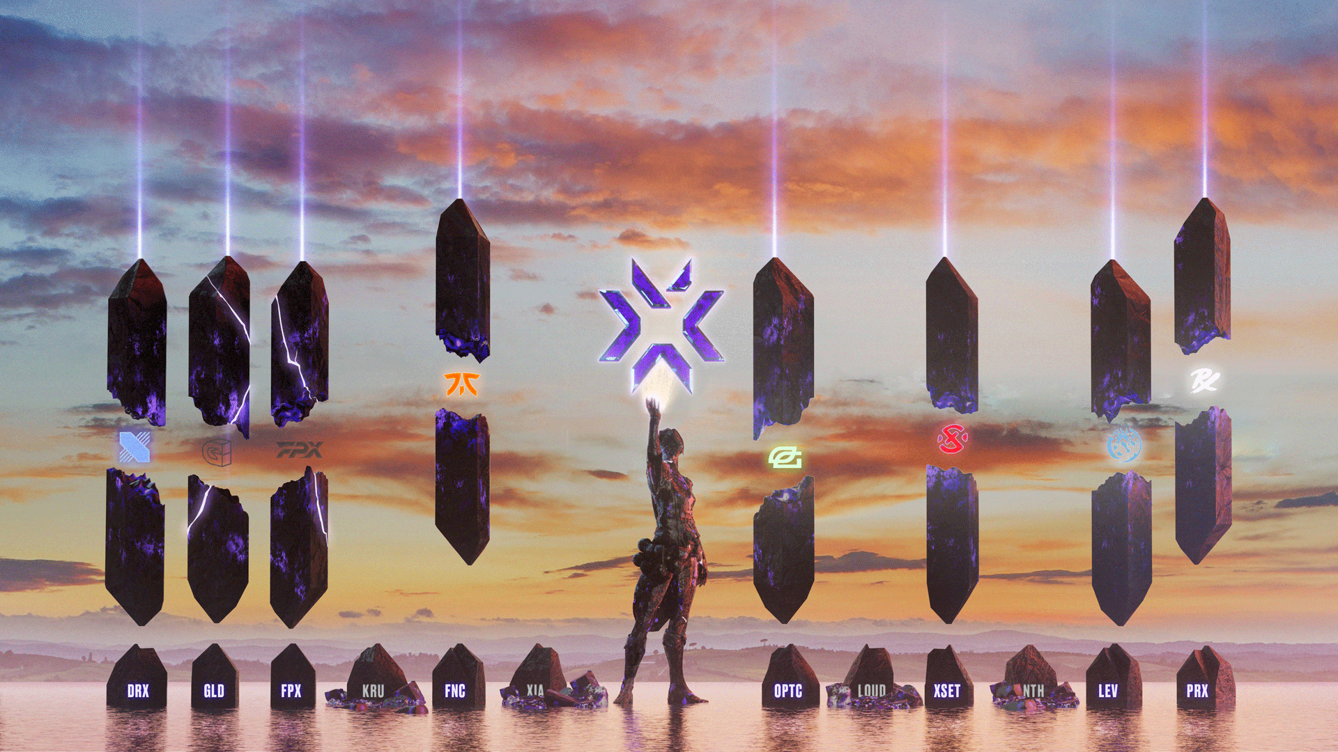 As with many of our Masters campaigns, we pushed into experimental territories with the work. For the first time in VCT work, we brought our pros into the film for the first time, rendering the pro FNS as the lead. To top it off we created a living key art that represented the 12 teams of the event. Each day it was updated to reflect the movement of teams through the bracket, leaving one totem left standing.